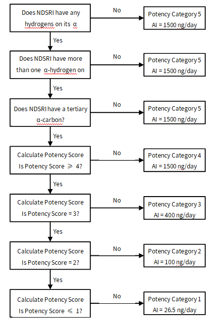 The decision tree for nitrosamine impurities are as follows: